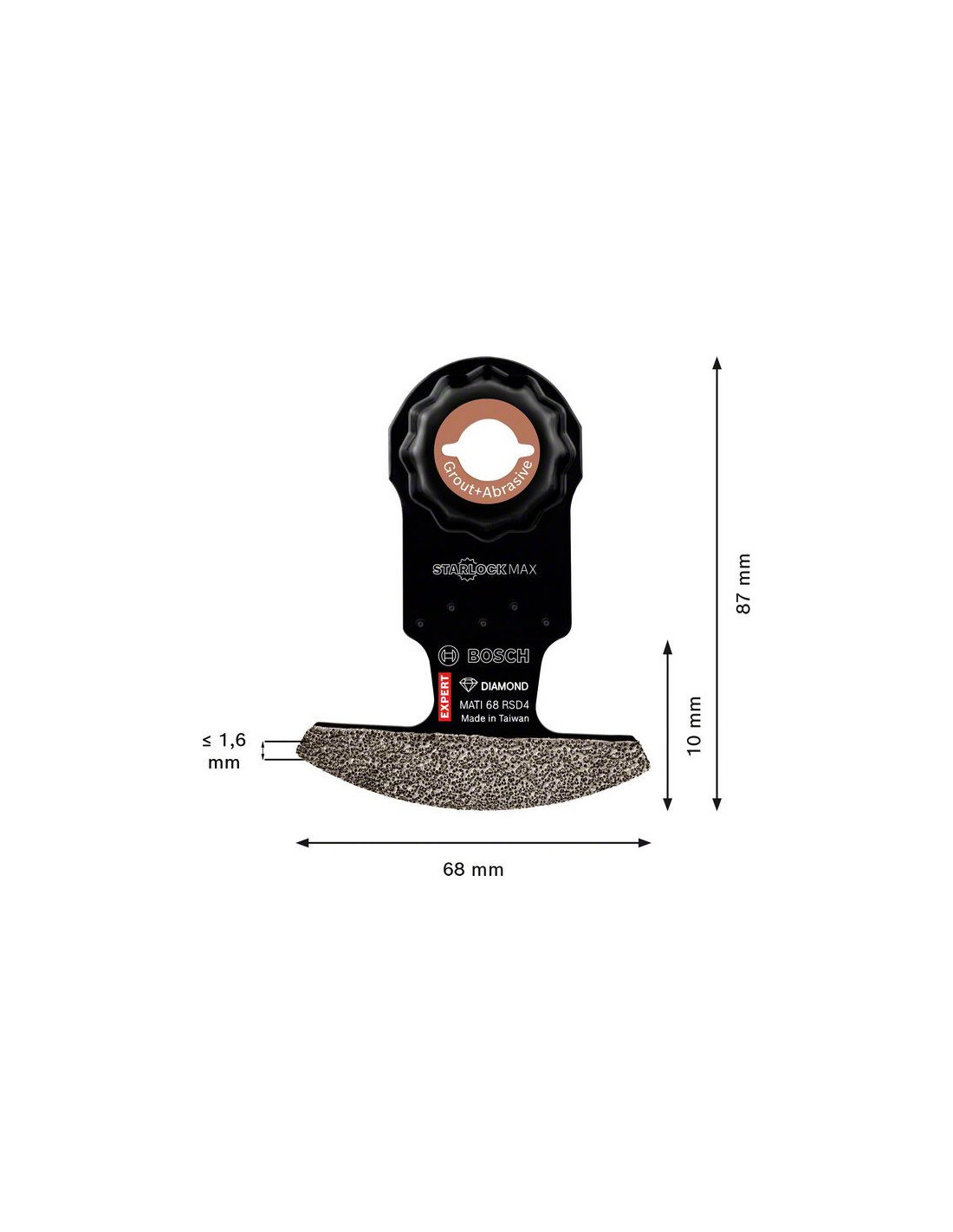 La tecnología Bosch Diamond Technology proporciona una larga vida útil y una capacidad de corte excelente: Con su grano de diamante de alta calidad, la hoja EXPERT Corner puede cortar incluso azulejos blandos. La versión fina RSD4, especialista en la eliminación eficiente de la lechada, es capaz de acceder a un espacio de tan solo 1,6 mm entre azulejos. RD4 ha sido diseñada para lechada con un espesor regular de 2,3 mm y más. Enganche StarlockMax para conseguir la máxima transmisión de la fuerza y un cambio práctico de la hoja en 3 segundos.