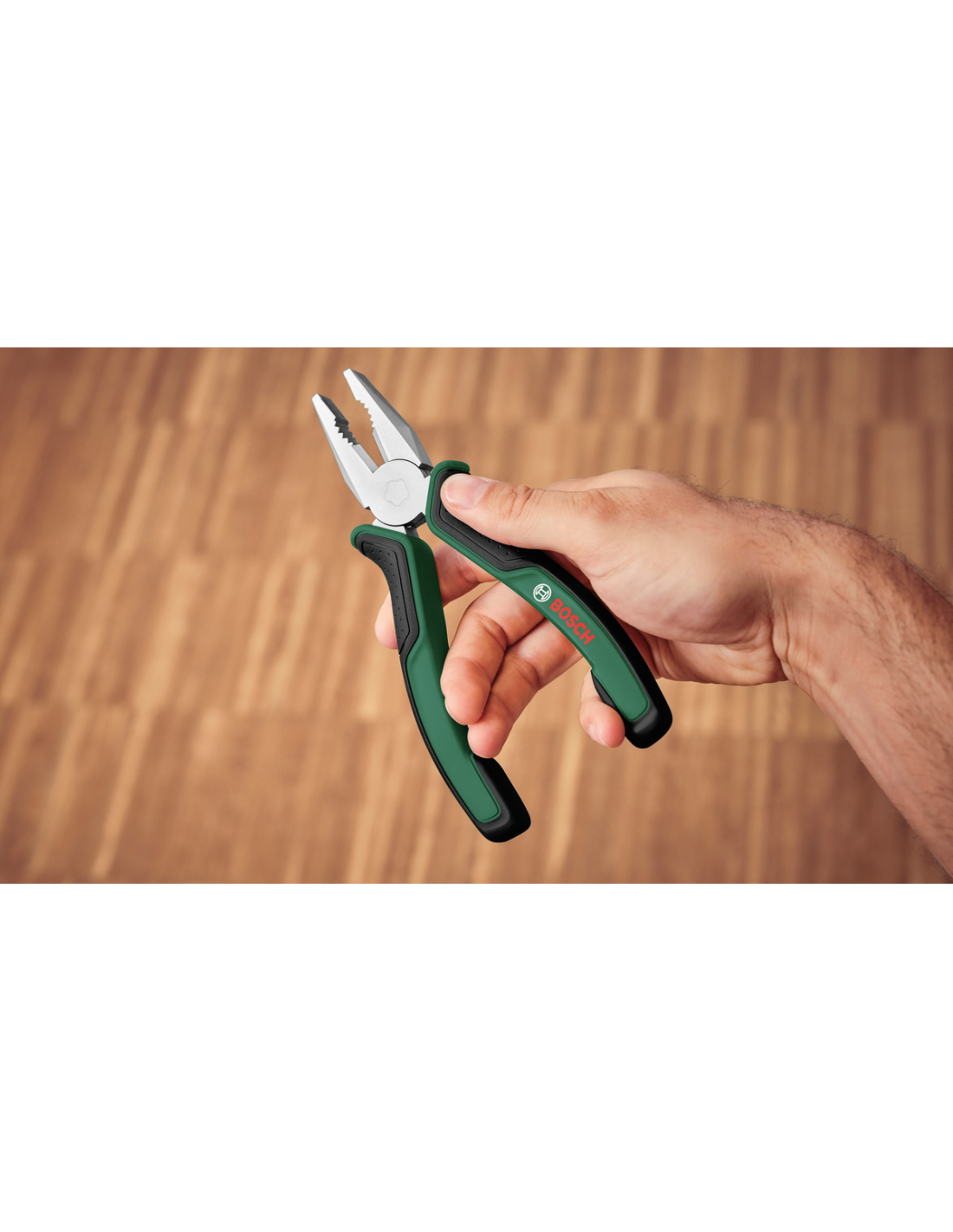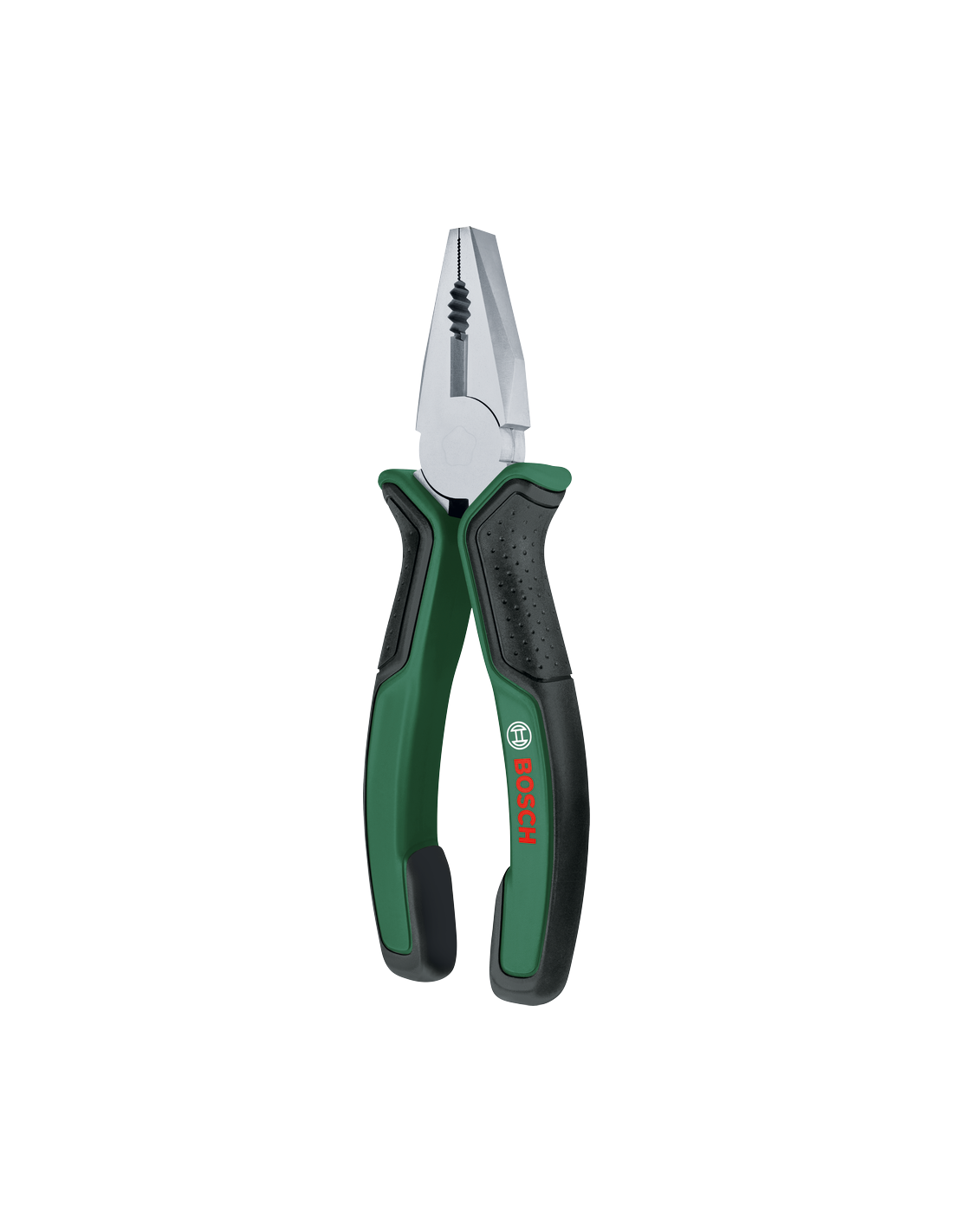 Los alicates combinados Bosch proporcionan la solución correcta para cualquier tarea. Estas robustas herramientas están diseñadas para trabajar con confort ergonómico y precisión, y realizar reparaciones y mantenimiento toda la vida Los alicates combinados de primera clase Bosch hacen que las tareas de bricolaje resulten fáciles y eficientes. Gracias a las grandes superficies de agarre suave, asientan cómodamente en la mano, su forma exterior ergonómica e interior patentada permite abrir y cerrar suavemente, y también ofrecen un control óptimo a la hora de cortar, girar y voltear. Gracias a la composición de acero al carbono duro y a la superficie niquel-cromada de alta calidad que evita la corrosión, los alicates combinados son muy duraderos.