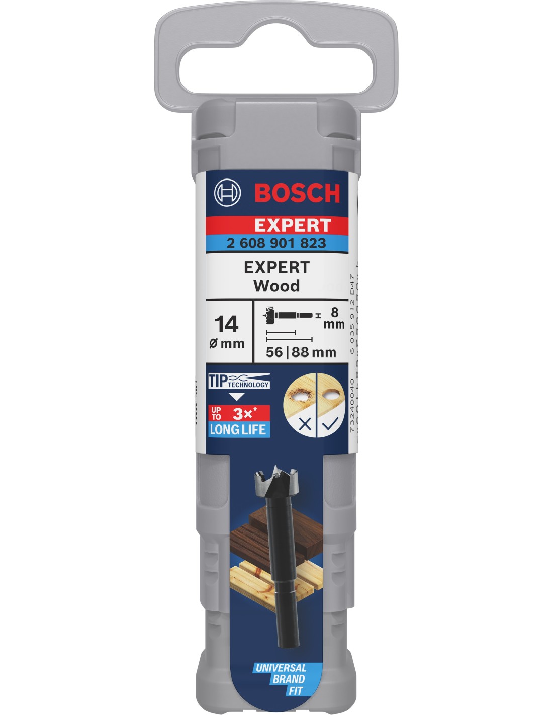 Tanto si necesitas hacer orificios limpios y sin astillas para bisagras de puertas como si quieres hacer agujeros avellanados o cualquier otro trabajo de carpintería, con la broca Forstner EXPERT Wood podrás hacer el trabajo fácilmente y con confianza. Cuenta con un borde de corte ondulado, resistente y afilado que hemos diseñado con la Tip Technology de Bosch, lo que le aporta eficacia y durabilidad tanto en madera dura como blanda.