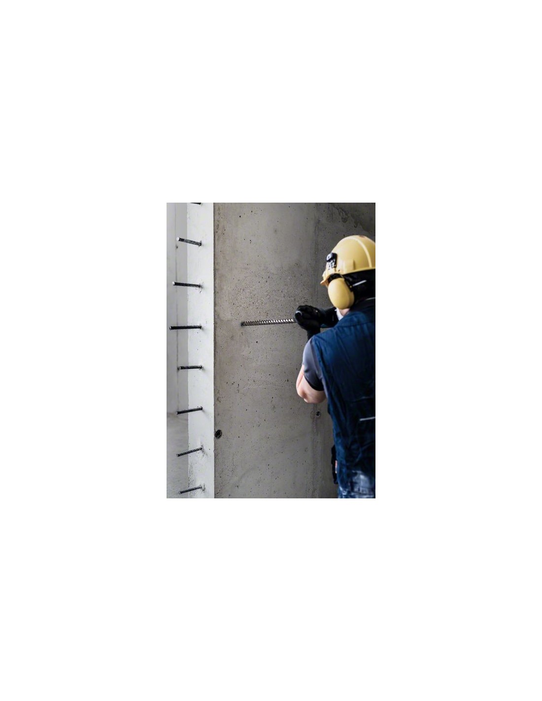 - Ideal para taladrar agujeros en hormigón armado, p. ej. para montar anclajes químicos o uniones de barras de refuerzo. La mejor para los trabajadores de la construcción: duradera y potente.