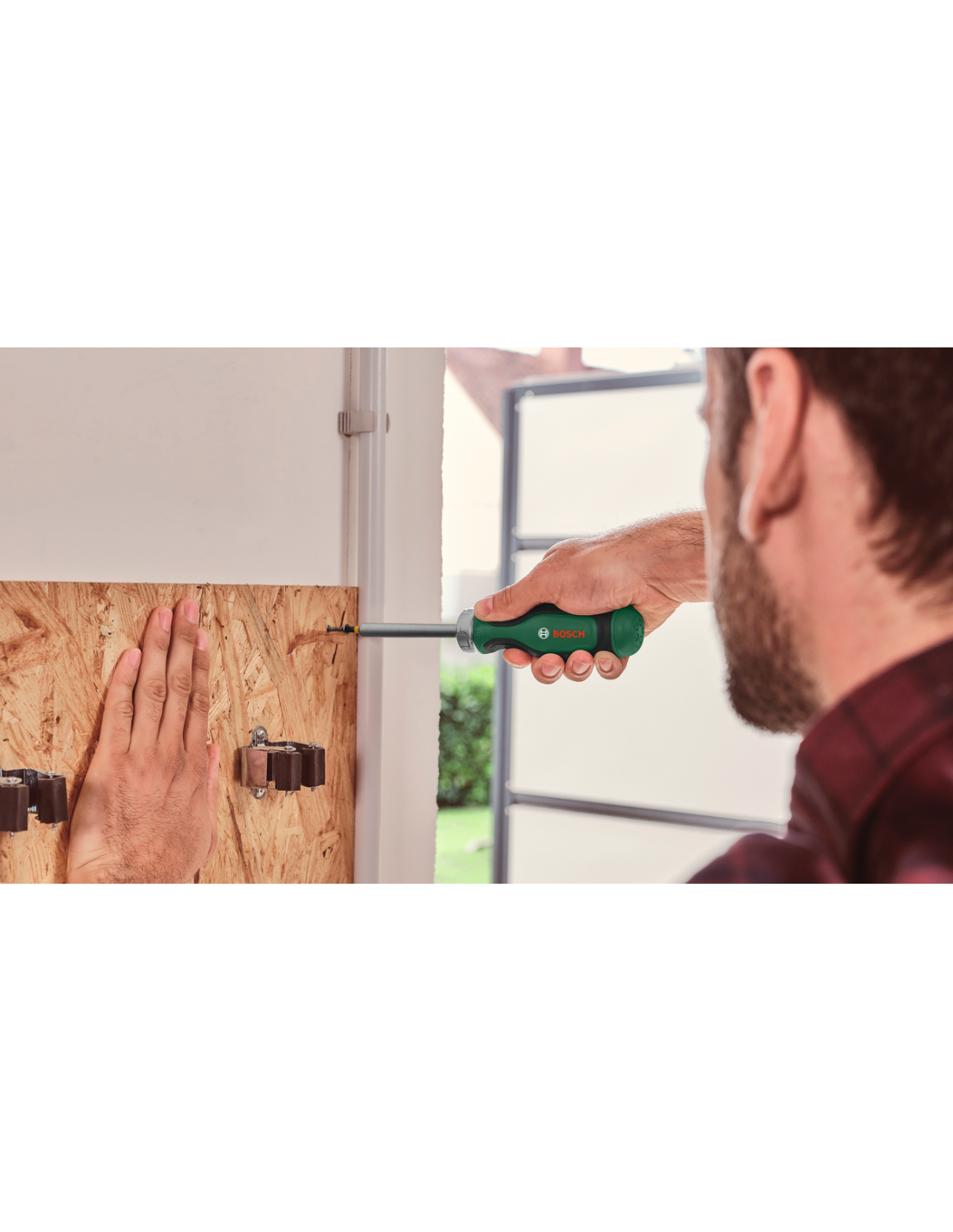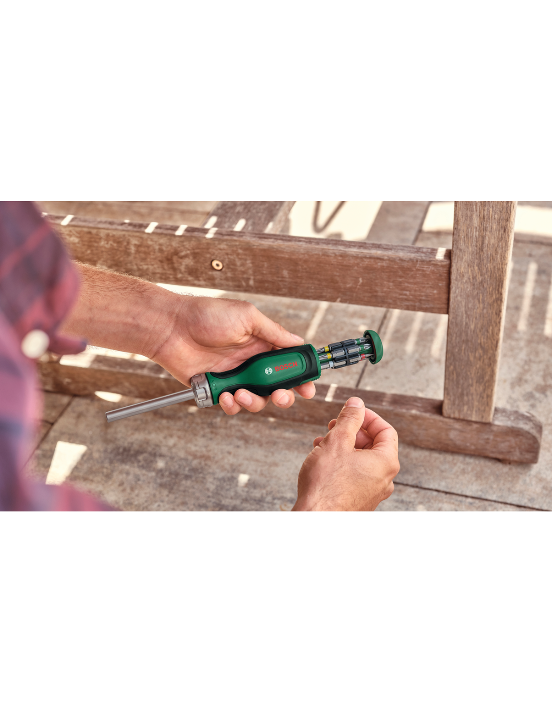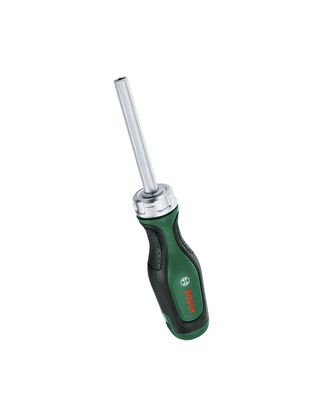 Para disfrutar de confort y una acción de atornillado resistente y continua, este destornillador de trinquete de diseño ergonómico es el compañero ideal. Con su impresionante par de apriete, el largo vástago de 80 mm para un trabajo controlado y el portapuntas magnético, esta herramienta permite realizar con rapidez trabajos de bricolaje y fijación sujeción pesadas. El atornillador de trinquete Bosch con 12 puntas dentro de la empuñadura define una categoría propia para atornillar de forma controlada y sin esfuerzo. La carraca incorpora un engranaje pulvimetalúrgico con 36 dientes que alcanza hasta 50 Nm de par de apriete. Para realizar el cambio de sentido rápidamente hay un intuitivo anillo de metal que se puede girar de izquierda a derecha, mientras que la posición intermedia se destina a trabajos de atornillado manual sin carraca. Al aplicar más fuerza, las puntas permanecen firmes en su posición gracias al portapuntas magnético de la herramienta. Este atornillador tiene un vástago de 80 mm para trabajar cómodamente y con precisión. Para mayor comodidad, la empuñadura del atornillador tiene un depósito de puntas emergente con 12 puntas codificadas por colores, de varios tamaños (PH, PZ, SL, TX, HEX) y fabricadas en acero duro S2. Para aumentar el confort y el control al trabajar, este destornillador de trinquete es compacto y tiene diseño ergonómico con empuñadura de dos componentes y grandes áreas de agarre suave.