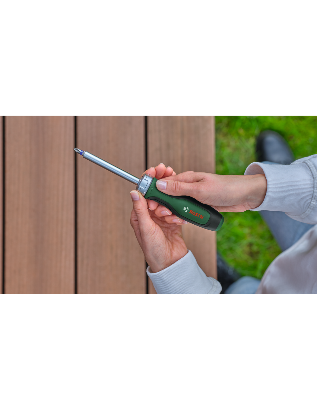 Para un atornillado resistente y continuo, este destornillador de trinquete con puntas de diseño ergonómico es el compañero ideal. Con su impresionante par de apriete para un trabajo controlado en espacios estrechos y su portapuntas magnético, esta herramienta permite llevar a cabo con rapidez trabajos de bricolaje y trabajos de fijación exigentes. El destornillador de trinquete de Bosch con puntas es único en su clase para un atornillado controlado y sin esfuerzo. La carraca incorpora un engranaje pulvimetalúrgico con 36 dientes que alcanza hasta 36 Nm de par de apriete. Para realizar el cambio de sentido rápidamente hay un intuitivo anillo de metal que se puede girar de izquierda a derecha, mientras que la posición intermedia se destina a trabajos de atornillado manual sin carraca. Al aplicar más fuerza, las puntas permanecen firmes en su posición gracias al portapuntas magnético de la herramienta. Este destornillador cuenta con una varilla de 80 mm de cromo-vanadio para trabajar con potencia y precisión en zonas estrechas de difícil acceso. Para mayor confort y control al trabajar, este destornillador de trinquete es compacto y tiene diseño ergonómico con empuñadura de dos componentes y grandes áreas engomadas.