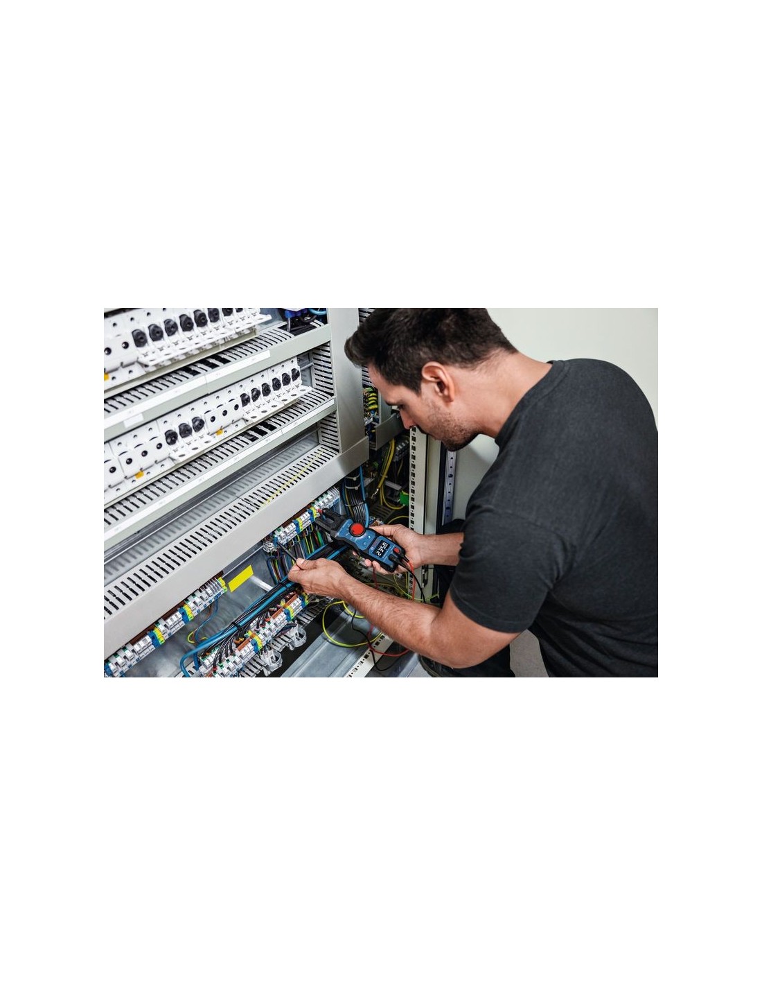 La horquilla amperimétrica GFM 1000-15 Professional está diseñada para profesionales que necesitan llevar a cabo comprobaciones de corriente alterna y tensión CA/CC de forma rápida y eficiente. Con su diseño de pinza abierta, mide corrientes de hasta 200 A CA sin cables de prueba para ahorrar tiempo y esfuerzo. Esta herramienta todo en uno mide la corriente alterna, la tensión CA/CC hasta 1000 V, la continuidad y la resistencia, y cuenta con LoZ V CA/CC integrado. Con protección IP54, su robusta estructura garantiza la resistencia a caídas accidentales de hasta dos metros y condiciones adversas. Además, el agarre cómodo reduce el cansancio durante el uso prolongado, lo que la convierte en imprescindible para electricistas y técnicos de climatización. Ideal para electricistas y técnicos de climatización, el GFM 1000-15 Professional ofrece una medición no invasiva de la corriente alterna para que trabajes más rápido sin interrumpir los circuitos. Gracias a su diseño compacto, es fácil de usar en espacios reducidos, como paneles eléctricos estrechos, así como en otros entornos complicados. El detector de tensión sin contacto (NCV) integrado y la linterna lo hacen más seguro y práctico, lo que lo convierte en una opción fiable para instalaciones eléctricas, mantenimiento y reparaciones. Compatible con baterías de iones de litio para una potencia duradera, la GFM 1000-15 Professional cuenta con una pantalla LCD invertida, valor eficaz verdadero (True RMS) para lecturas precisas y una función de retención para capturar fácilmente las lecturas. Al ser compatible con el versátil sistema de suspensión con imán MH 1 Professional, permite el funcionamiento con manos libres. Ofrece además una excelente protección al usuario, respaldada por las clasificaciones CAT IV 600V y CAT III 1000V. Los cables de medición de alta calidad hechos de silicona flexible y duradera ofrecen una vida útil fiable.
