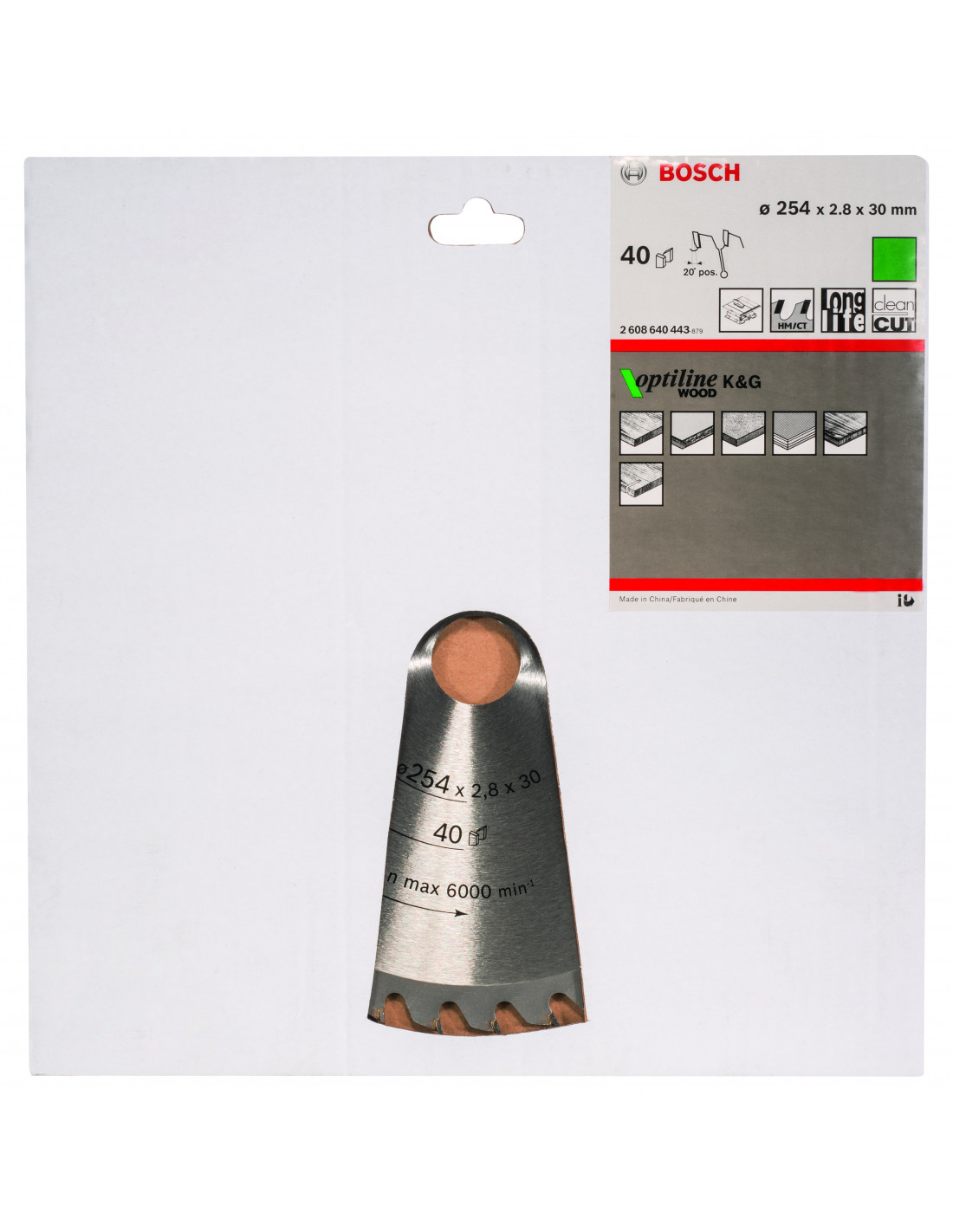El disco de sierra circular Optiline Wood ofrece cortes precisos y de calidad en todo tipo de maderas. - Es compatible con sierras ingletadoras e ingletadoras telescópicas. El orificio funciona con o sin anillos reductores para adaptarse a diferentes tamaños. Cortes seguros y de calidad - El disco de sierra circular Optiline Wood ofrece cortes precisos y de calidad en todo tipo de maderas. Los dientes de carburo de alta calidad y fresado preciso ofrecen cortes limpios, mientras que la base del disco, fabricada en acero endurecido SK5 (>40 HRC) con dimensiones estables, garantiza la precisión. Además, las ranuras de expansión del disco reducen la vibración durante el uso, con lo que se amortigua el ruido y se genera menos calor. Este disco de sierra sirve para todos los tipos de maderas y materiales de madera. Es compatible con sierras ingletadoras e ingletadoras telescópicas. En función del número de dientes, se pueden lograr diferentes resultados con los discos de sierra circular Optiline Wood, que cuentan con geometría de diente ATB (dentado alternado): un número de dientes elevado ofrece cortes limpios, mientras que un número de dientes bajo garantiza un corte sólido y eficiente. El orificio funciona con o sin anillos reductores para adaptarse a diferentes tamaños.