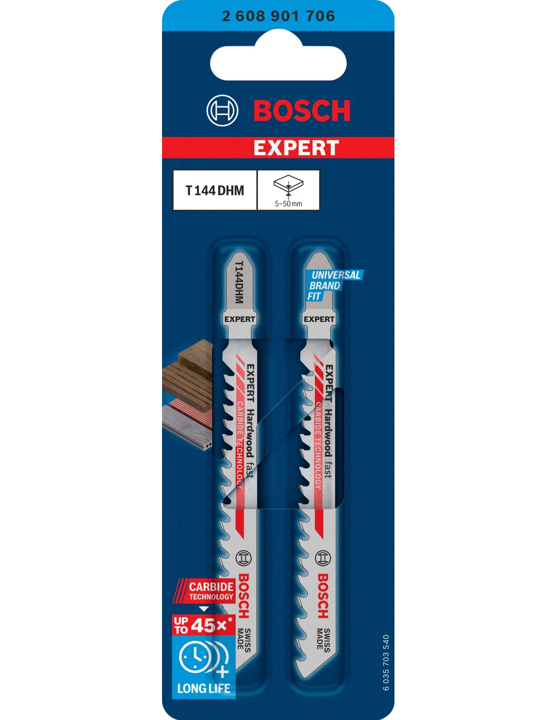 A diferencia de la mayoría de las hojas de sierra de calar para madera, EXPERT Hardwood fast T144DHM utiliza la tecnología Bosch Carbide Technology. Los afilados dientes de carburo de la hoja se rectifican a partir del metal más duro para garantizar que puedan cortar los materiales más resistentes con rapidez.