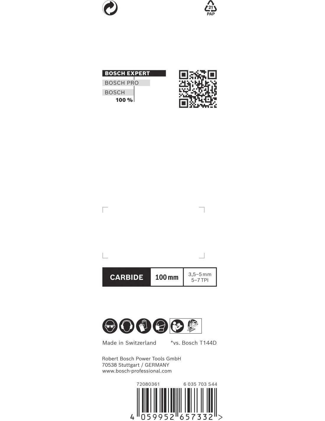 - Dura hasta 45 veces más que la hoja de sierra de calar Bosch T144D