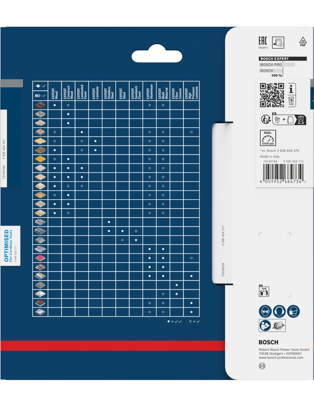 EXPERT MetalMax es la arista de corte de la tecnología Bosch Carbide Technology. Sus dientes están fabricados con una tira de metal extremadamente duro que puede cortar incluso el acero inoxidable y cuenta además con un recubrimiento adicional de alta tecnología para conseguir la máxima longevidad. La arista plana está optimizada para realizar recortes, ya que es menos propensa a patinar en tornillos o tuberías.