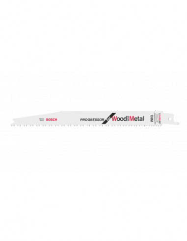 Hoja de sierra sable S 3456 XF Progressor for Wood and Metal para cortes rápidos y potentes en material grueso y fino - Uso con sierras sable con sistemas de vástago de inserción universal de 1/2 pulgada. Compatible con todas las sierras sable con vástago de inserción en S. Cortes rápidos y potentes - Hoja de sierra sable S 3456 XF Progressor for Wood and Metal para realizar cortes rápidos y potentes en materiales gruesos y finos. El espacio entre dientes de aumento progresivo permite cortes fuertes y rápidos en material con variedad de densidades, y sus dientes están especialmente diseñados para cortar gran variedad de madera y metal, incluido el aluminio. Además, su material de calibre medio (1,25 mm) ofrece el mejor equilibrio entre velocidad, flexibilidad y estabilidad de corte. La hoja BIM (bimetálica) se ha optimizado aún más para cortar los clavos suaves, el material de acero templado y los metales no ferrosos presentes en la madera. Tiene una longitud estándar de 200 mm para una capacidad de corte de hasta 150 mm. Uso con sierras sable con sistemas de vástago de inserción universal de 1/2 pulgada. Compatible con todas las sierras sable con vástago de inserción en S.