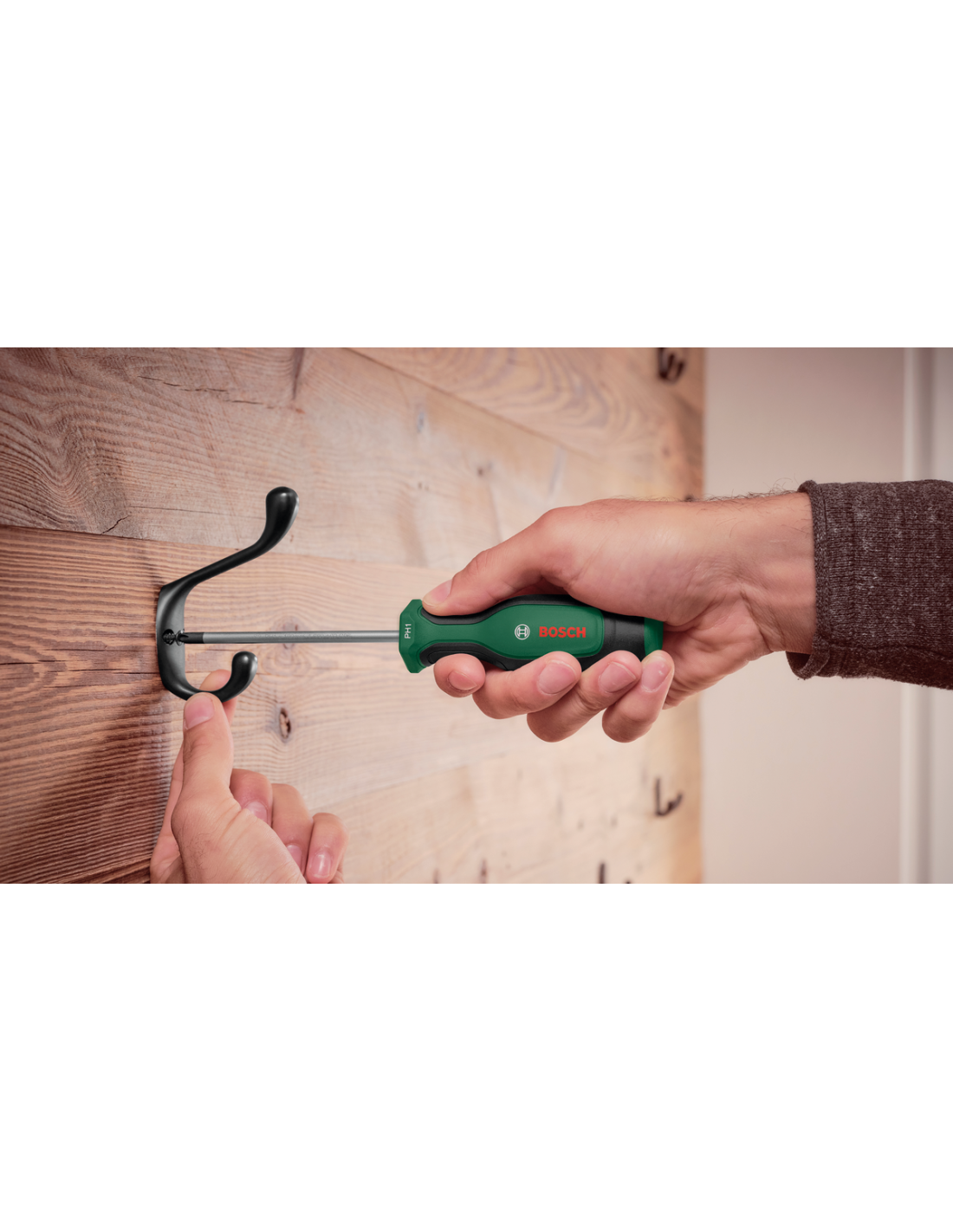 Para reparaciones, mantenimiento y múltiples tareas de bricolaje, los juegos de atornilladores Bosch ofrecen robusto rendimiento de sujeción y óptimo confort para trabajar. Cada atornillador de alta calidad lleva un diseño ergonómico y es fácil de elegir gracias al código de colores en su mango. Cualquier trabajo de sujeción se realiza de forma rápida y eficiente con un destornillador de alta calidad del juego de destornilladores Bosch. Estos destornilladores están diseñados para ofrecer el máximo rendimiento con un excelente confort: cada uno está fabricado con el mejor acero duro S2 para un apriete robusto al menos un 20 % por encima de la normativa DIN e incorpora un diseño ergonómico para una fuerza óptima. Atornillado estable y mejor contraste visual, las puntas de atornillar son magnéticas y están coloreadas en negro fosfatado. El mango de dos componentes está engomado para un mejor manejo y confort, y la forma hexagonal del destornillador impide que salga rodando al colocarlo sobre una superficie. ¿Qué destornillador elegir para cada trabajo? Lo encontrarás fácilmente gracias a los códigos de color de calibre y forma que aparecen en el mango de la herramienta.