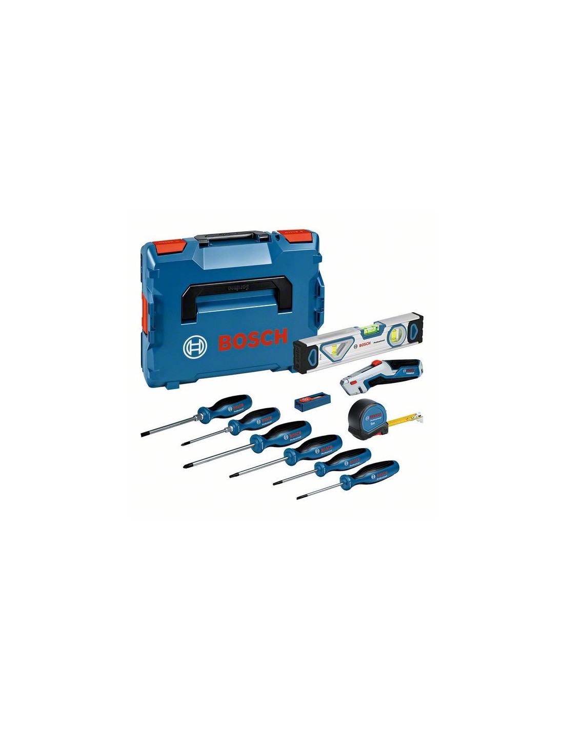 Siempre debes tener las herramientas manuales básicas disponibles y listas para usar. Nos aseguramos de que esto sea posible con el juego de 19 herramientas manuales profesionales que viene incluido en una cómoda L-BOXX 102. Las herramientas manuales están fabricadas con los materiales de mayor calidad, como acero y aluminio al cromo-vanadio, para una mayor resistencia y durabilidad. Gracias al agarre suave y al diseño ergonómico de las herramientas, disfrutarás de una comodidad de trabajo excelente. El juego contiene 6 diferentes destornilladores para insertar y extraer varios tipos de tornillos (Phillips, plano, Torx y Pozidriv), además de cinceles con destornilladores que presentan caperuzas de choque metálicas (PH1 y SL6.5). Además, el juego incluye un nivel magnético de 25 cm con niveles de burbuja e imanes integrados, una cinta métrica de 5 m y una cuchilla retráctil para alfombras con 10 hojas de repuesto. El compartimento para hojas de la cuchilla permite un almacenamiento sencillo de hasta 3 hojas de repuesto. Su mango presenta un diseño ergonómico que permite un uso cómodo gracias al apoyo extraancho del pulgar para ejercer más fuerza. El juego de herramientas manuales viene incluido en una L-BOXX 102 de Bosch Professional con 2 medias bandejas para que todas las herramientas estén bien almacenadas y para que se pueda transportar todo el juego de forma rápida y cómoda. Incluye: destornilladores SL 3.5/SL 6.5/TX 15/TX 20/PH 1/ PZ 2, nivel (magnético) de 25 cm, cinta métrica de 5 m, cuchilla retráctil para alfombras y 10 hojas de repuesto. Las 2 medias bandejas incluidas están optimizadas para la L-BOXX 102 de Bosch Professional.