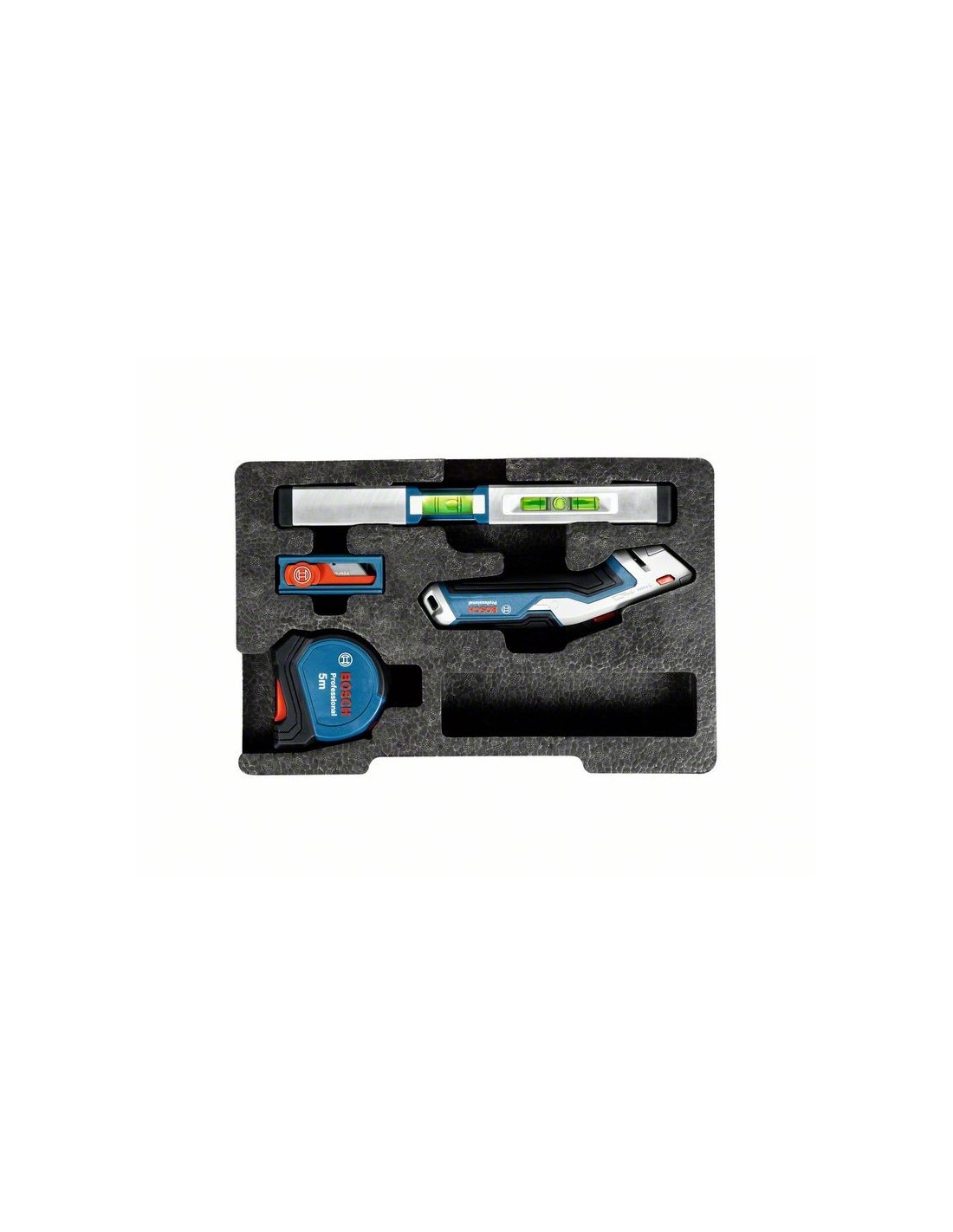 El versátil juego de herramientas con 13 unidades ofrece distintas herramientas de uso habitual en todos los tipos de tareas diarias en la obra. El diseño robusto del juego y el uso de materiales de la más alta calidad contribuyen a que tenga una larga vida útil. El juego se suministra en un práctico embalaje, una media bandeja compatible con el sistema de transporte L-BOXX de Bosch. El embalaje garantiza que todas las herramientas del juego se guarden de forma ordenada y segura. El juego es adecuado para las tareas diarias básicas, como la nivelación, la medición de distancias de hasta 5 metros y el corte de todo tipo de materiales. Incluye un nivel magnético de 25 cm, una cinta de medir de 5 m y un cúter plegable para cortar moqueta con 13 cuchillas de recambio (3 cuchillas en la empuñadura del cúter y otras 10 cuchillas de recambio). El juego se suministra en una media bandeja compatible con el sistema de transporte L-BOXX de Bosch.