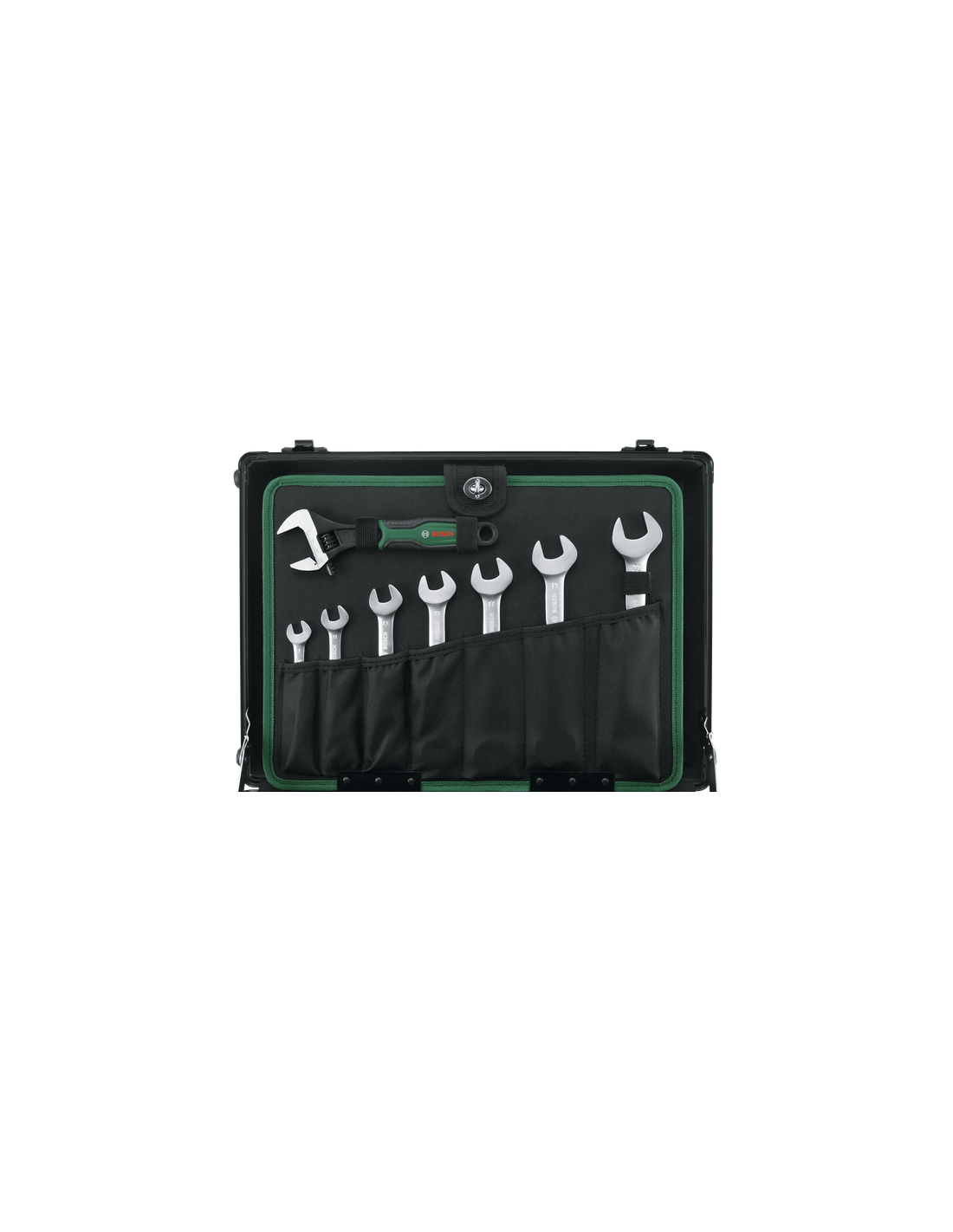 - 7 x llaves de boca fija doble (8/9, 10/11, 12/13, 14/15, 16/17, 18/19, 20/22)