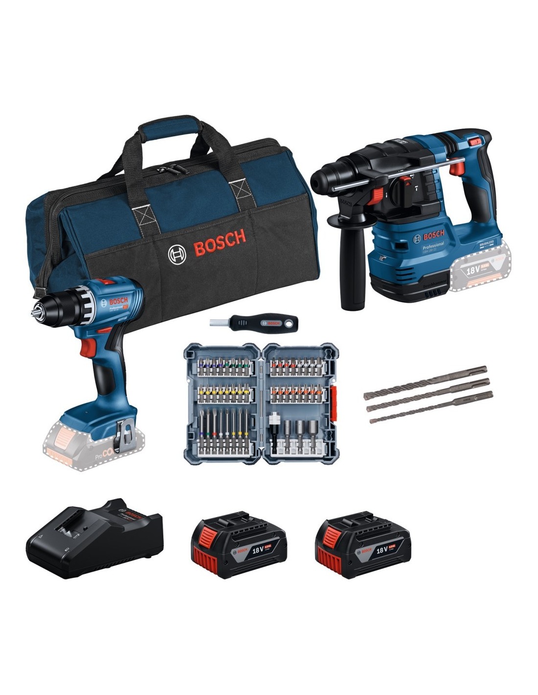 - Baterías incluidas: 2 unidades Bosch GBA 18 V (4.0 Ah)