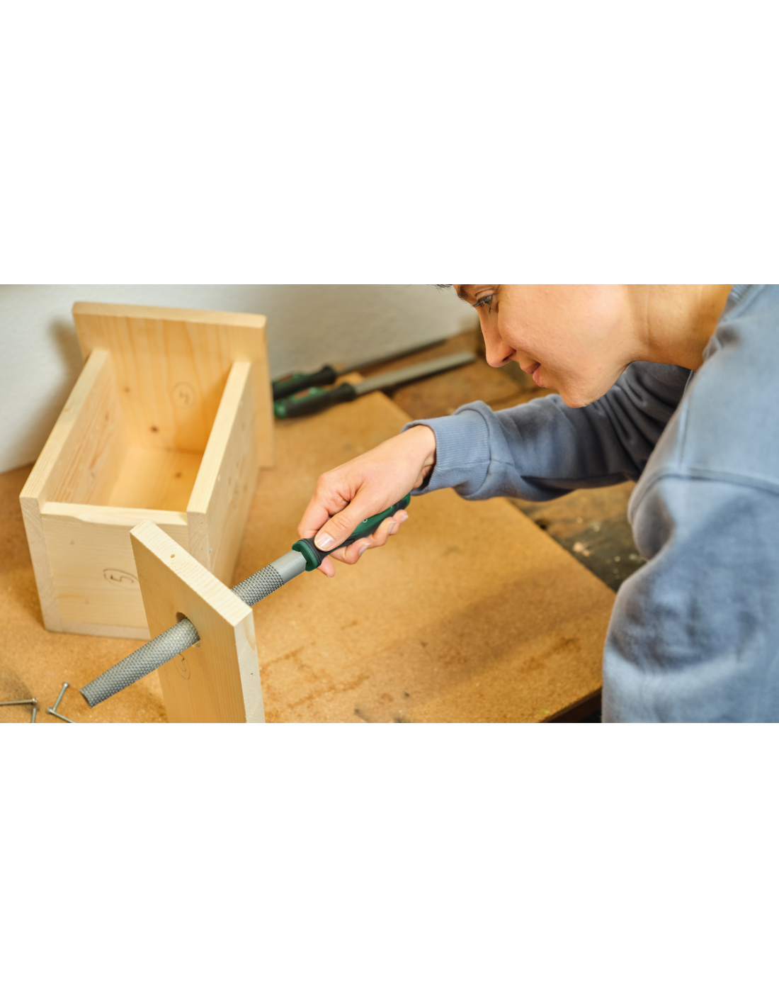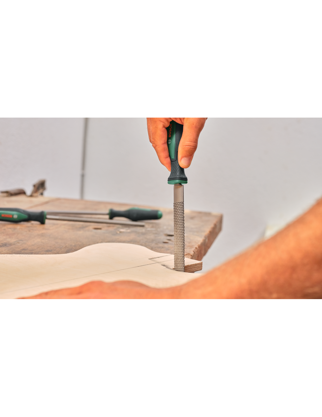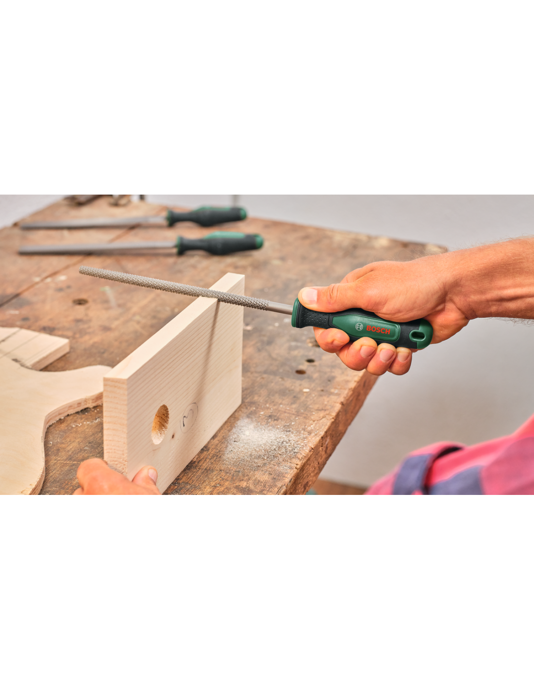 Este set de 3 escofinas de Bosch está diseñado para trabajar en madera de forma versátil y sin esfuerzo. Escofinas robustas y ergonómicas, de acero endurecido al carbono, para un acabado y moldeado de madera perfectos. Cuando se trata de trabajos de bricolaje en madera, el set de 3 escofinas de Bosch, que incluye escofina plana, de media caña y redondeada de 200 mm, es la elección perfecta para fabricar muebles, reparar accesorios o restaurar antigüedades. Estas escofinas de acero al carbono duro de alta calidad cuentan con una cuchilla de dos bordes de rugosidad media para lograr un acabado y alisado eficientes de la madera. Gracias a sus mangos engomados ergonómicos con hendiduras para el pulgar, permiten trabajar con la madera con mayor comodidad y control. Para un almacenaje y acceso rápidos, estas escofinas se proporcionan con prácticos orificios para colgar.