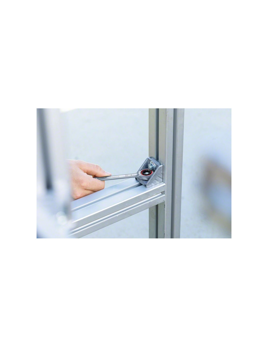 Este versátil set de 10 piezas incluye llaves de carraca de los tamaños más comunes. Todas las llaves se pueden utilizar en una amplia variedad de aplicaciones, ya que cada una combina una llave de boca con una llave de anillo de trinquete en un mismo producto. Todas las llaves permiten trabajar perfectamente en espacios estrechos gracias a la carraca sin dientes que solo requiere un ángulo de retracción de menos de 1°. Fabricadas en acero al cromo-vanadio de alta calidad con un anillo bihexagonal endurecido, las llaves son robustas y de larga vida útil. El surtido de 10 piezas incluye llaves de carraca en los tamaños estándar de 8, 10, 12, 13, 14, 15, 16, 17, 18 y 19 mm. Las llaves de carraca están diseñadas para aplicaciones de precisión con pares de apriete ligeros y medianos. Para aplicaciones de alto par de apriete, se recomienda utilizar una llave de boca fija. El surtido se entrega en una práctica media bandeja compatible con el L-BOXX Mobility System de Bosch.