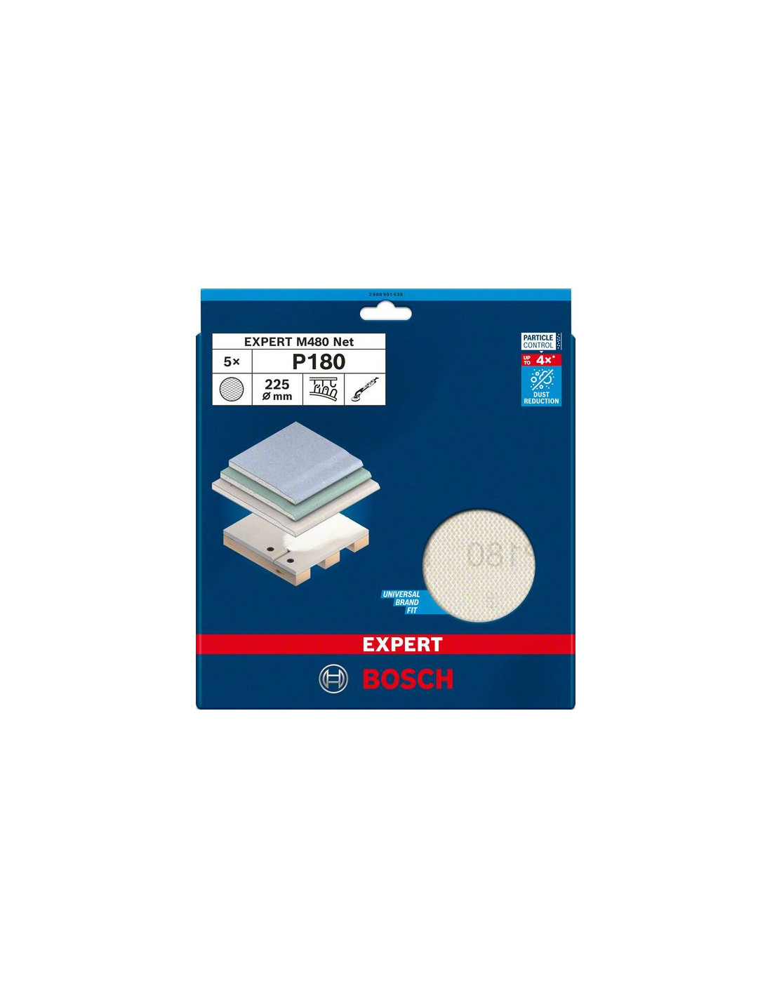 Bosch Particle Control asegura que todas las partículas de polvo vayan a parar a la aspiradora o al filtro. La malla de lija Bosch EXPERT M480 se encuentra en primera línea de este sistema. Las partículas pasan directamente a través de su malla abierta en lugar de obstruir la superficie o contaminar el aire. Proporciona una alta eficacia y extrema duración.