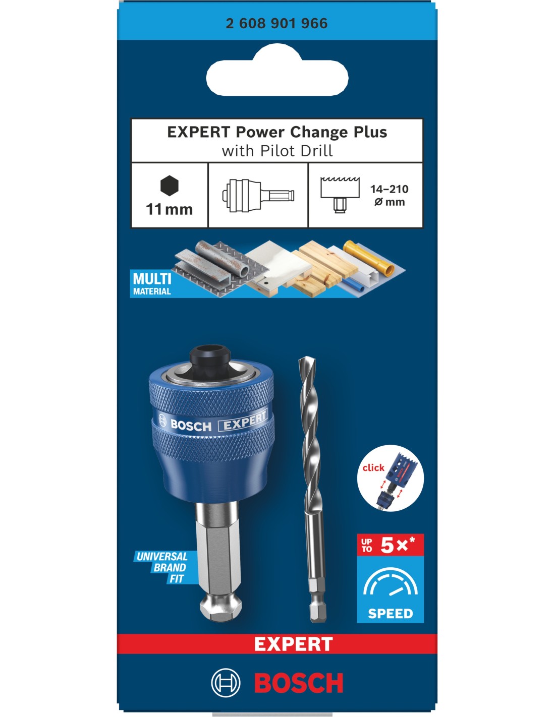 Las sierras de corona son un accesorio magnífico, pero conectarlas al taladro siempre ha sido un trabajo engorroso que se tiene que hacer con precisión. Esto cuesta tiempo y dinero a los profesionales. Con EXPERT Power Change Plus se puede cambiar de sierra de corona en cuestión de segundos gracias al ingenioso mandril de un clic de Bosch.