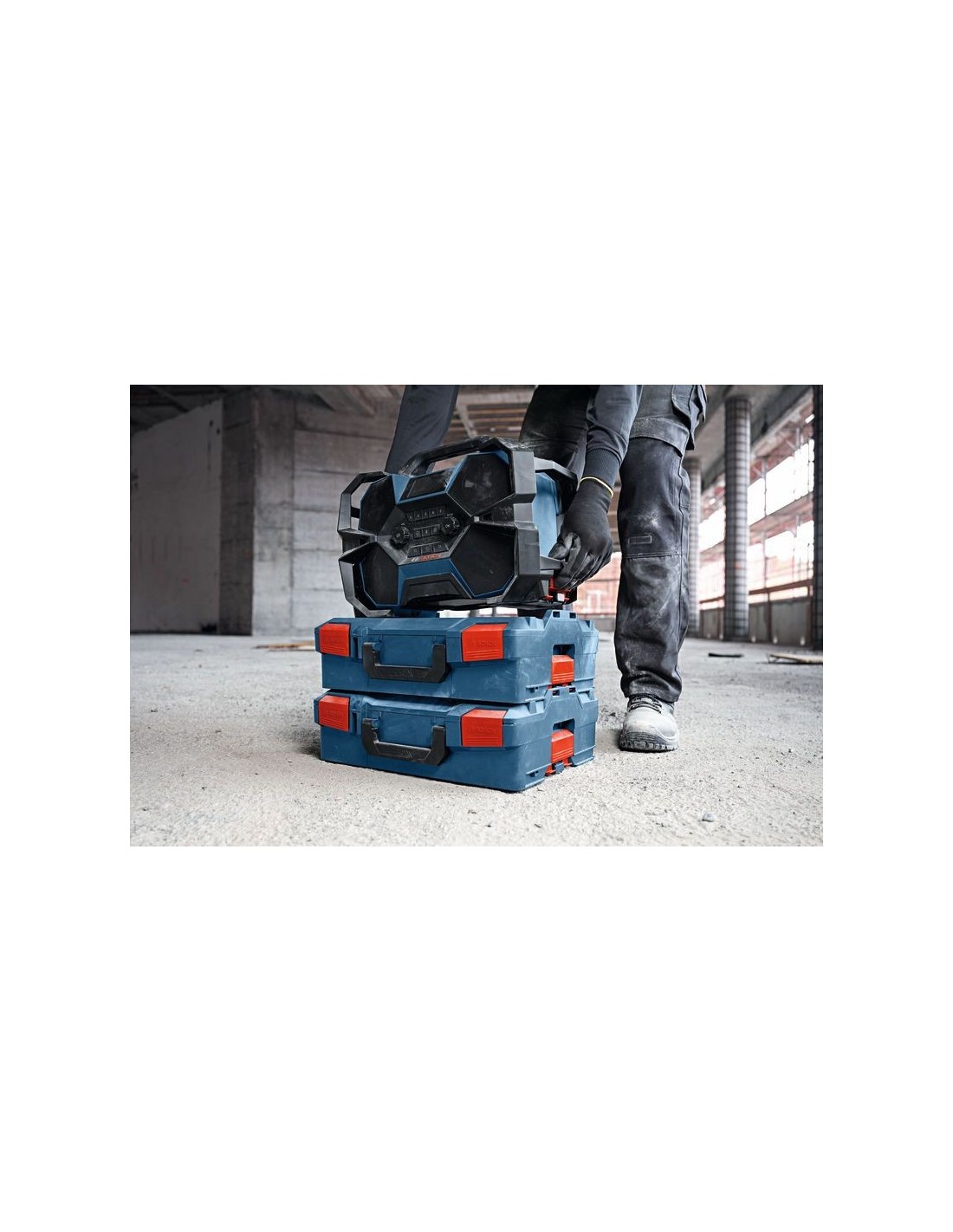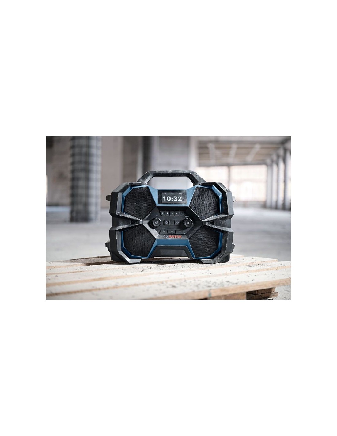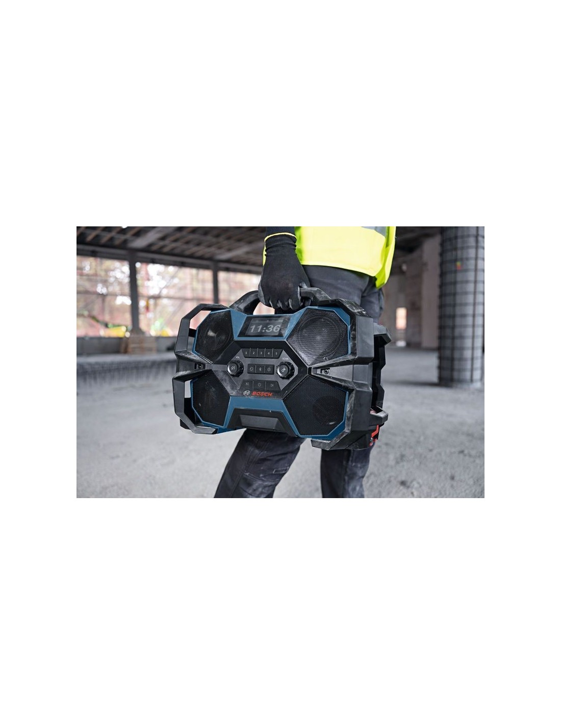 Llena tu espacio de trabajo con tu música favorita y de la manera más sencilla. Nuestra radio híbrida GPB 18VH-6 SRC Professional ofrece un sonido cristalino desde múltiples fuentes: DAB+, FM, Bluetooth®, AUX y Multi-Speaker Sound. El Multi-Speaker Sound te permite compartir y conectar música en streaming por Bluetooth® en múltiples dispositivos compatibles. Esta robusta radio cuenta con carcasa protectora y es fácil de transportar al ser compatible con la L-BOXX: basta con encajar la radio en otra L-BOXX y listo. Puedes cargar tus baterías de 12 V y 18 V con la radio enchufada a la red eléctrica. La GPB 18VH-6 SRC Professional incluye un puerto USB para cargar smartphones. También cuenta con un sistema de fácil retirada de la batería de 18 V: basta con tirar de la palanca para desbloquear y extraer la batería. No hace falta pulsar el botón rojo ni maniobrar para sacar la batería del compartimento. Compatible con el sistema Bosch Professional 18V System y con la alianza de batería multimarca AMPShare. También es compatible con el Bosch Professional 12V System. La radio de obra cuenta con protección IP54 cuando se usa con batería y con todos los compartimentos cerrados. Incorpora una pantalla y una interfaz de usuario grandes, y puedes colocar tu smartphone en el asa de la radio. Además, tiene hasta un abrebotellas.
