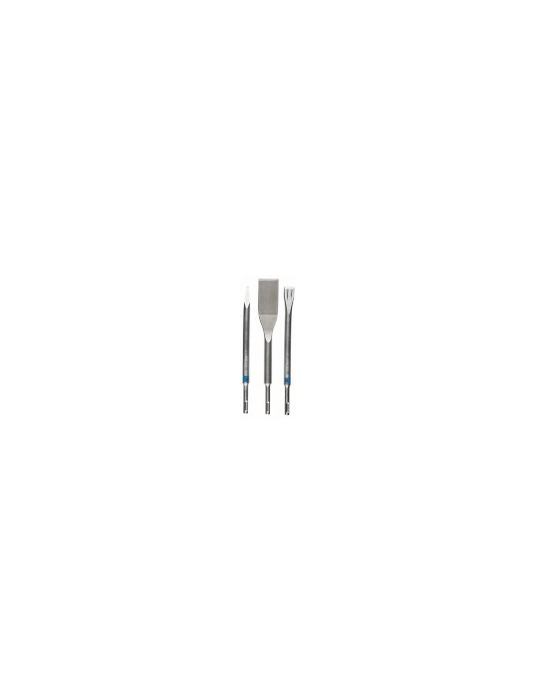 - Juego de cinceles SDS plus de tres piezas: plano, puntiagudo y para azulejos para aplicaciones en d