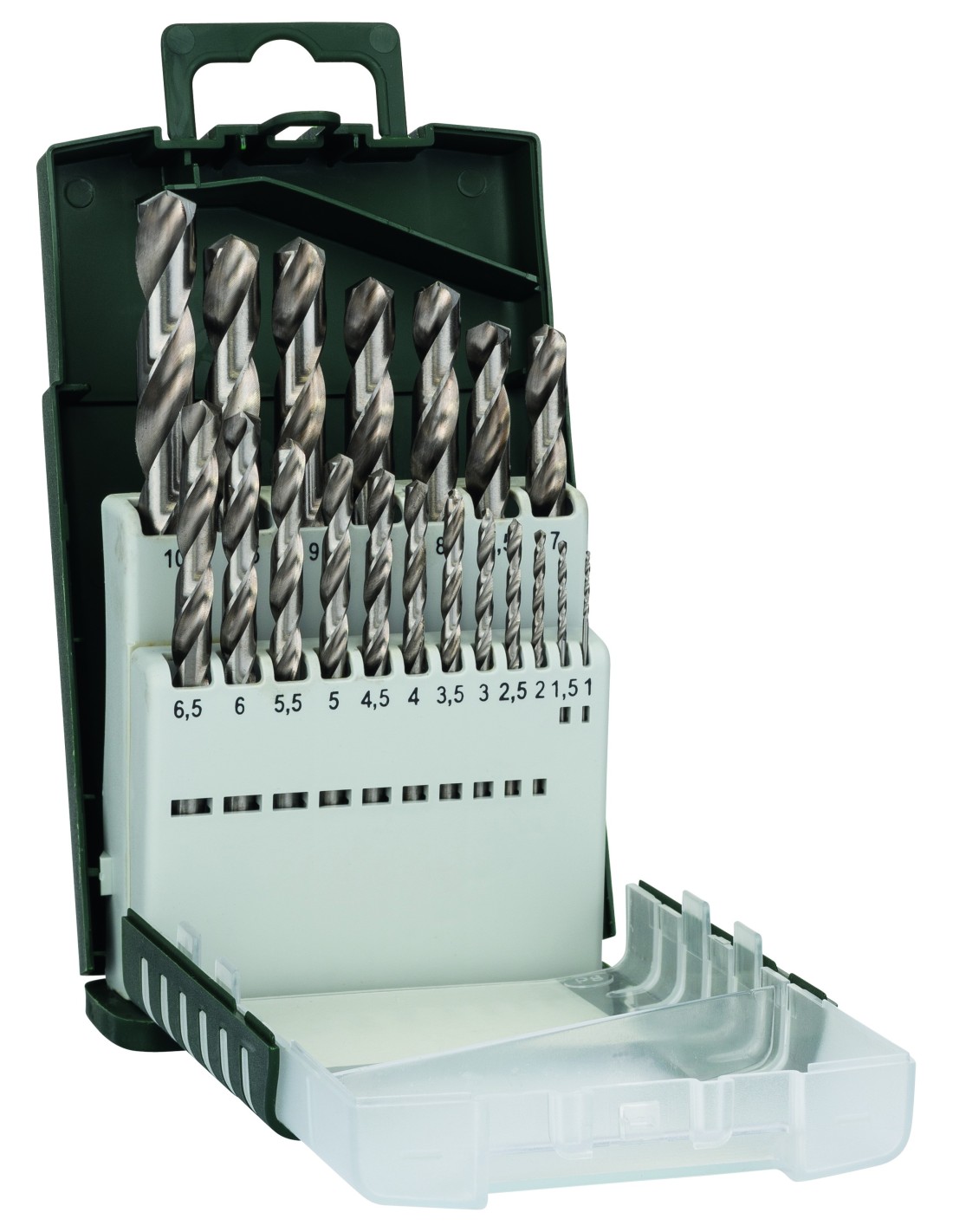 Set de 19 brocas para metal HSS-G, DIN 3381,0, 1,5, 2,0, 2,5, 3,0, 3,5, 4,0, 4,5, 5,0, 5,5, 6,0, 6,5, 7,0, 7,5, 8,0, 8,5, 9,0, 9,5, 10,0 mm