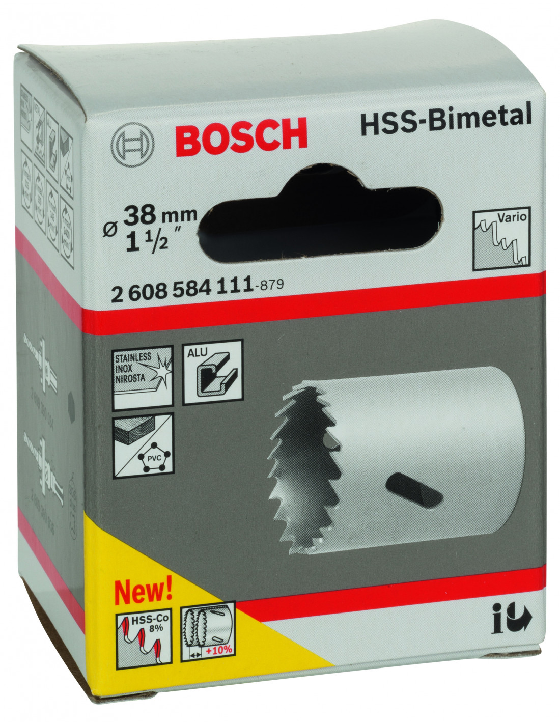 Sierra de corona bimetálica para corte suave en distintos materiales - Sierra de corona bimetálica que se ajusta a todos los adaptadores estándar del mercado. Se adapta al adaptador convencional roscado. Corte suave - La sierra de corona bimetálica ofrece corte suave en distintos materiales. La configuración de los dientes (tira de dientes variable) es ideal para penetrar fácilmente el material y ofrecer cortes suaves. Esta sierra de corona, hecha de HSS (acero de alta velocidad) y bimetálica, contiene una aleación del 8% de cobalto, lo que reduce los riesgos de rotura de los dientes y ofrece mayor resistencia al calor para cortes prolongados. Utilice esta sierra de corona para cortar madera, metal y plástico Sierra de corona bimetálica que se ajusta a todos los adaptadores estándar del mercado. Se adapta al adaptador convencional roscado.