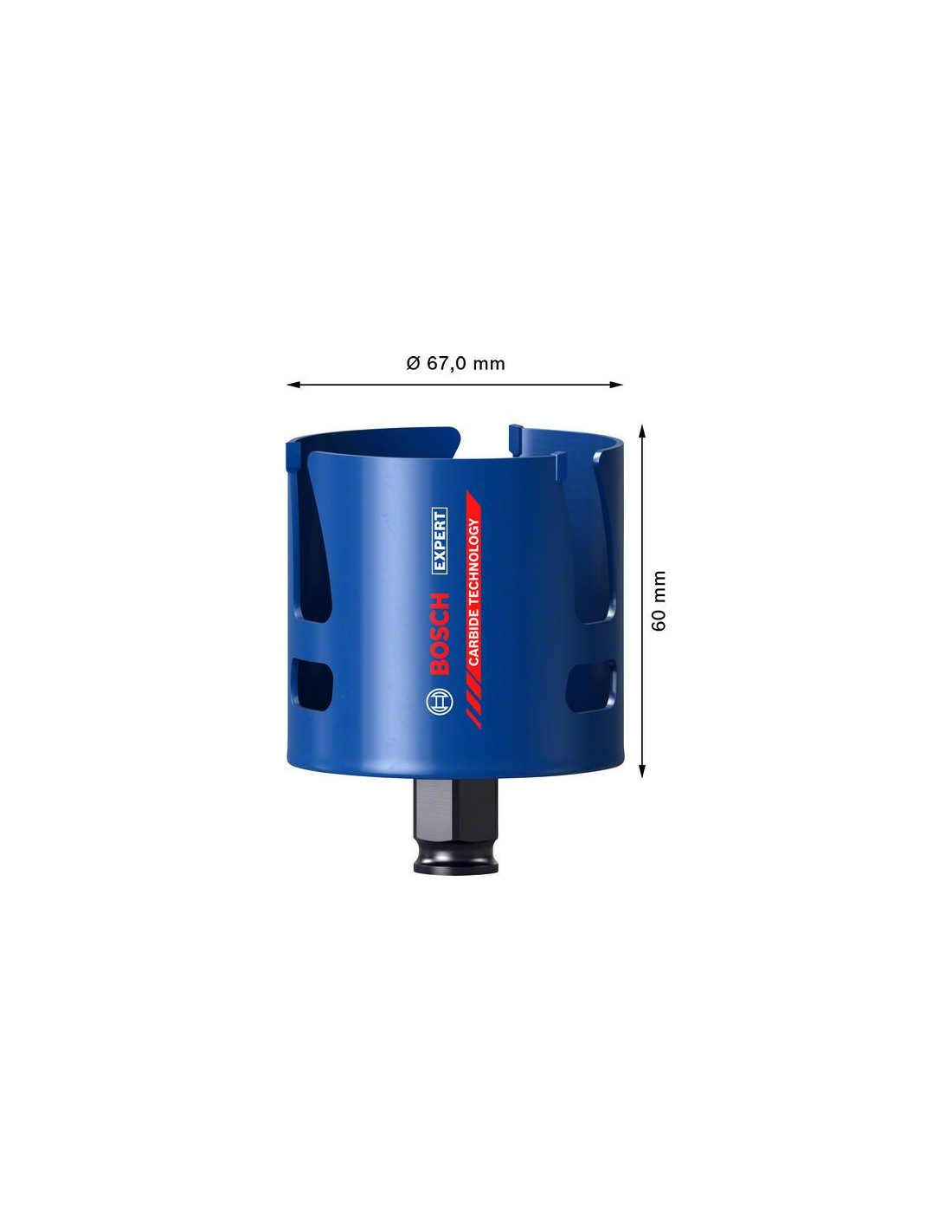 Con solo unos pocos dientes de carburo de gran tamaño en su cuerpo de acero, EXPERT Construction Material consigue dar un buen mordisco. Sus grandes ranuras están optimizadas para una rápida eliminación de las virutas, por lo que devora rápidamente cualquier cosa, desde ladrillos hasta madera y tableros de partículas. La tecnología Bosch Carbide Technology es una combinación óptima de los metales más duros y garantiza una vida útil extremadamente larga. Para usar con el portabrocas sin llave Bosch Power Change Plus: ofrece precisión y robustez.