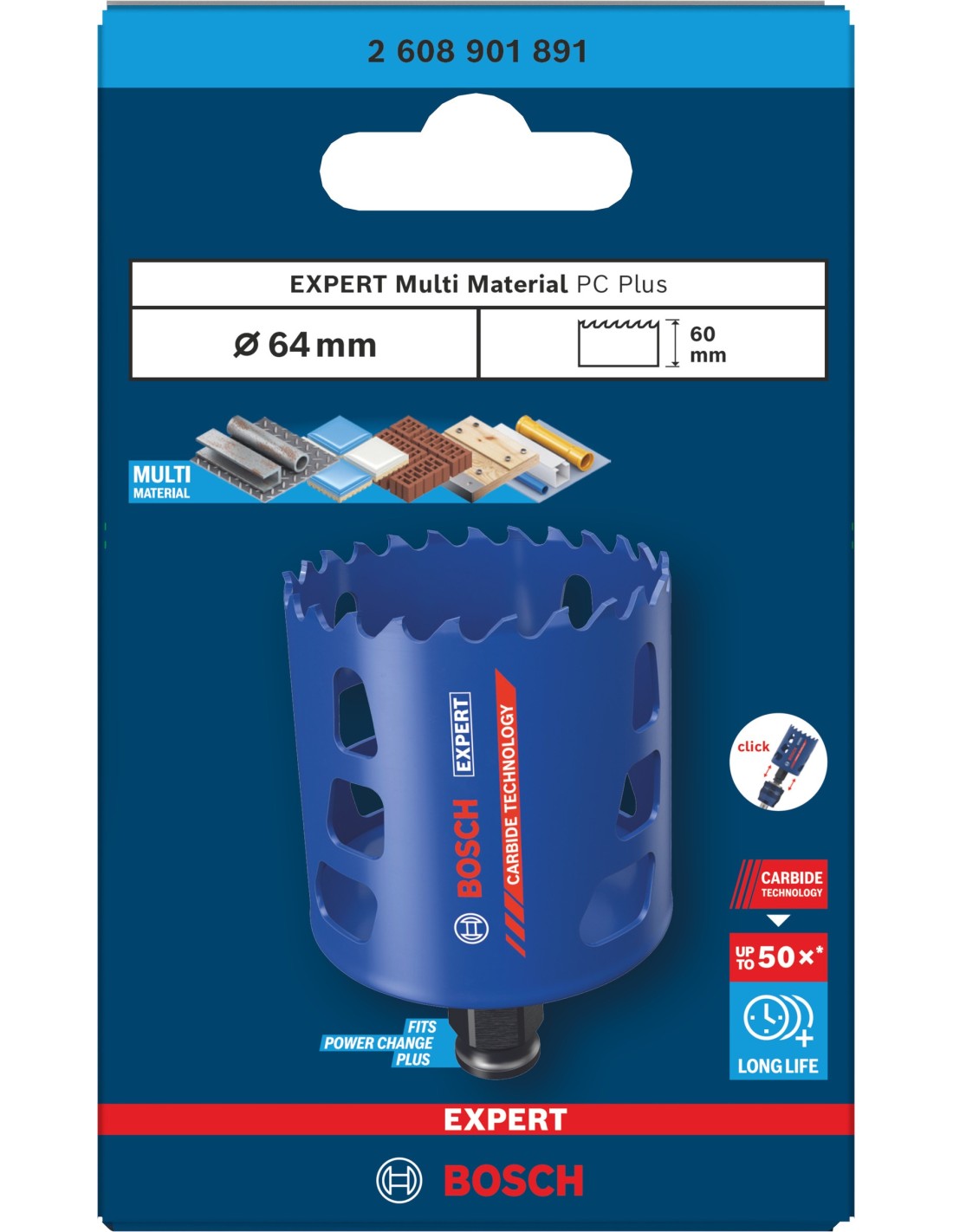 BOSCH 2608901890 Sierra de corona EXPERT Multi Material Power Change Plus (Ø60 x 60 mm)