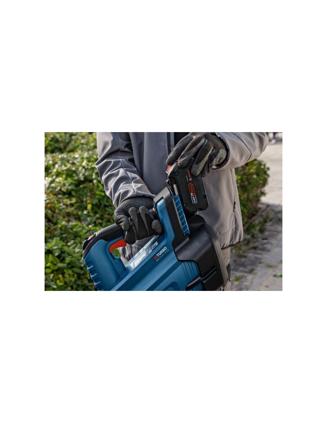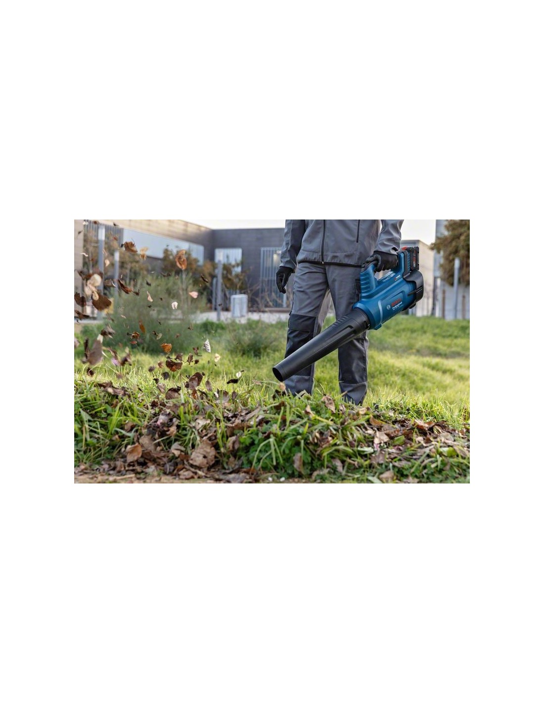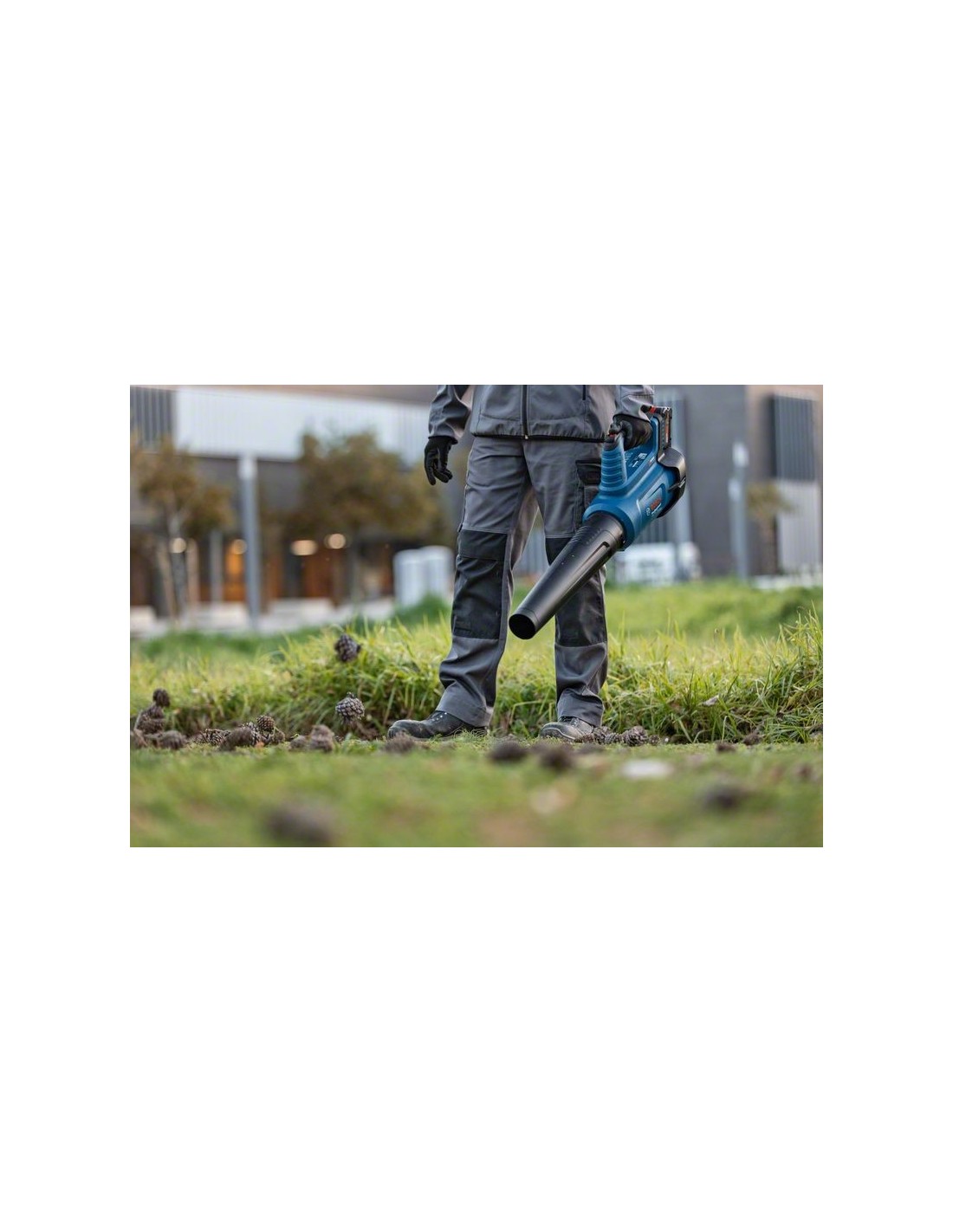 El soplador de hojas a batería GBL 18V-750 Professional con potente motor Brushless sin escobillas y ventilador axial genera un caudal de 780 m³/h y una velocidad del aire de hasta 198 km/h combinado con una batería ProCORE18V ≥ 5,5 Ah. Su regulador de velocidad te permite adaptar la gran potencia de la herramienta y ajustar así de forma óptima su autonomía y nivel de ruido. Con bajo nivel de ruido y sin emisiones, el soplador de hojas a batería es la herramienta perfecta para trabajar en zonas residenciales u otras zonas sensibles al ruido. Gracias a su diseño ergonómico y ligero, el soplador de hojas te permite trabajar durante largos periodos de tiempo. Compatible con el sistema Bosch Professional 18V System y con la alianza de batería multimarca AMPShare. El soplador de hojas a batería cuenta con una robusta boquilla que se puede acoplar y desacoplar con facilidad en un sencillo giro y clic para que puedas empezar a trabajar rápidamente y luego guardar la herramienta sin esfuerzo en lugares pequeños.
