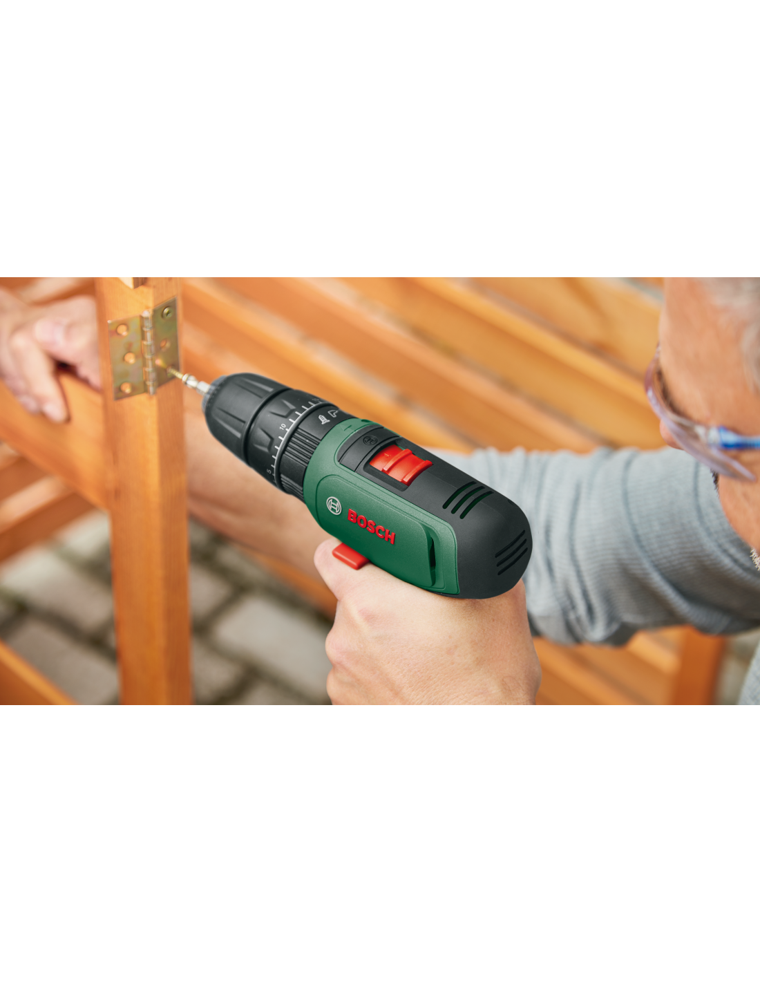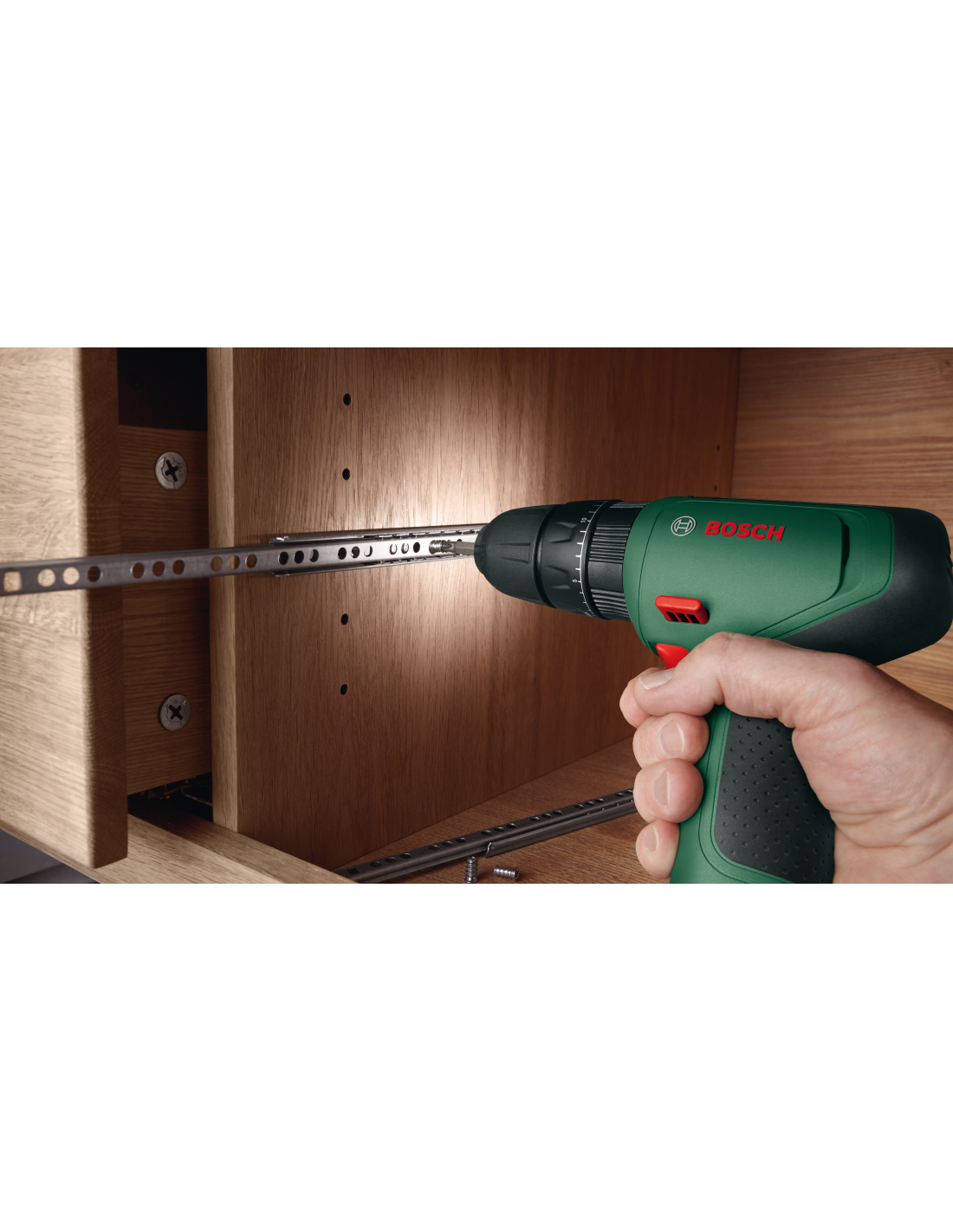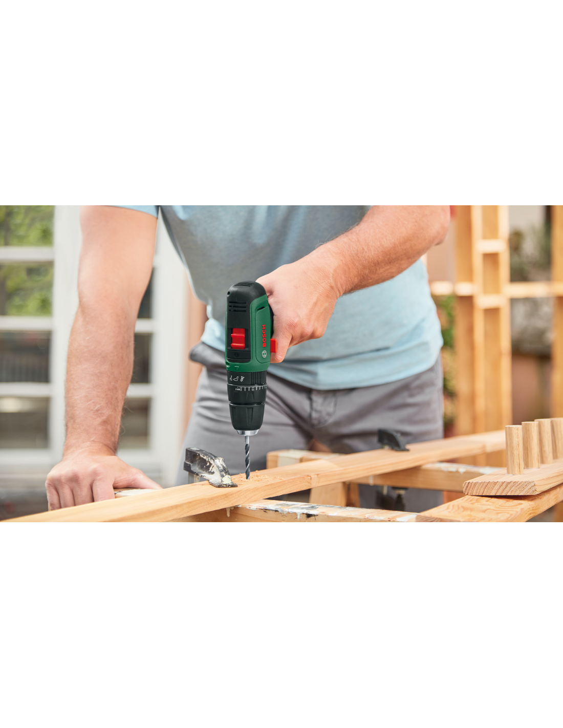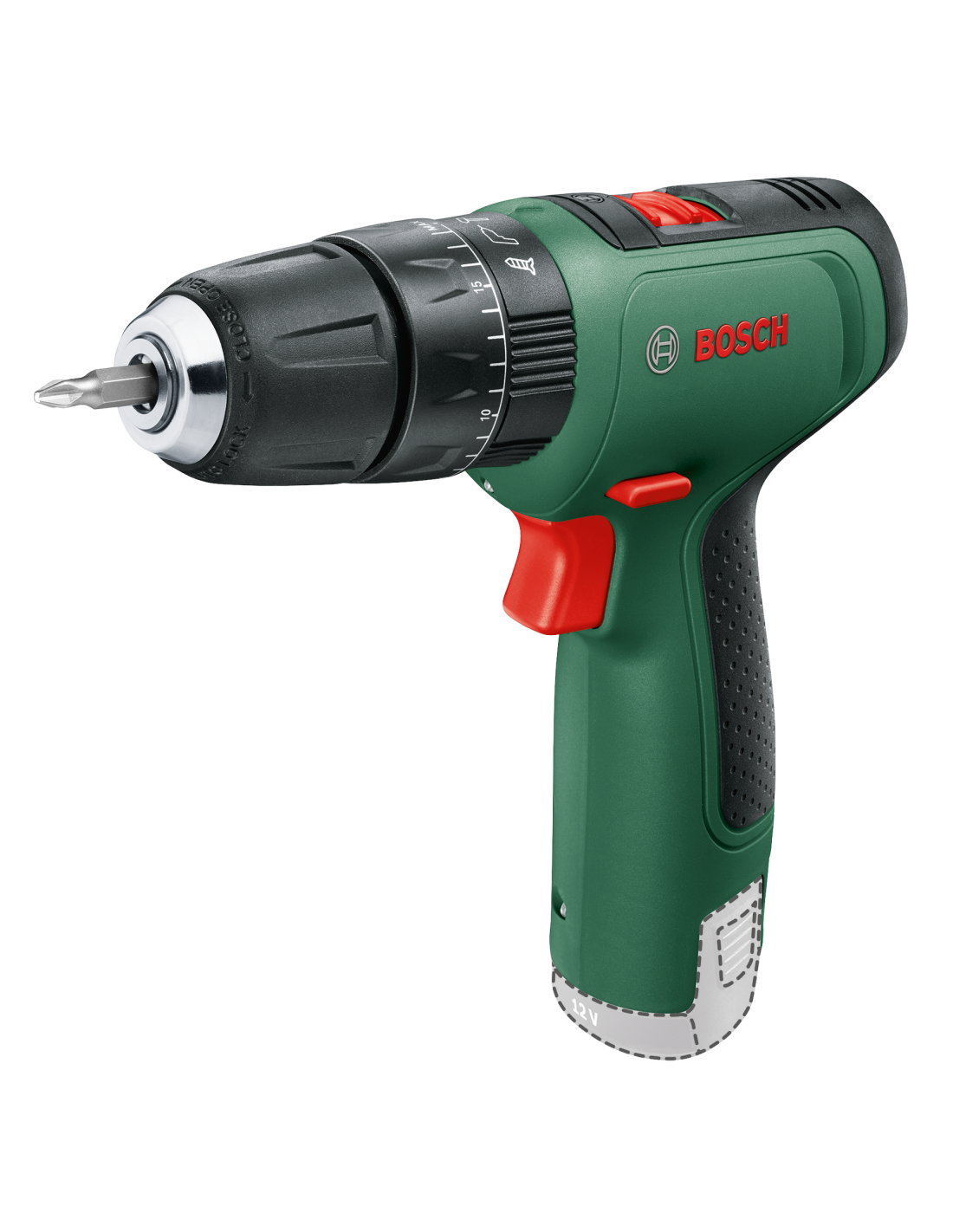 - Vástago de 10 mm y portabrocas de una pieza para cambiar con facilidad de tornillo y broca